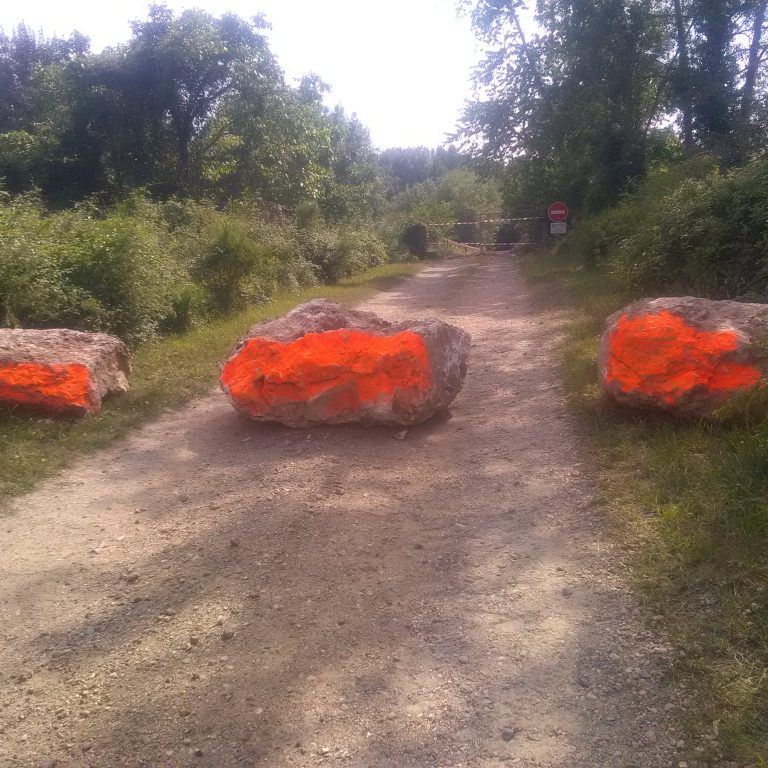 Afin de préserver cet ouvrage du patrimoine, les élus des 2 communes ont fait constater par un huissier la pose de pierres et de barrières fermant les accès au pont.