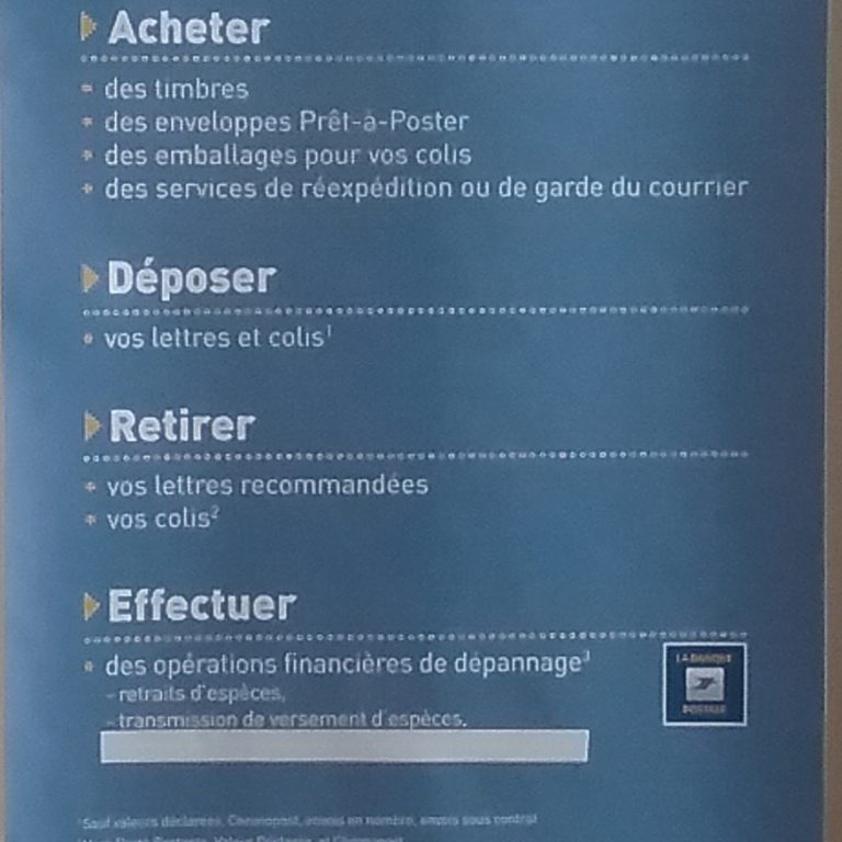 Heures de levées du courrier : du lundi au vendredi à 14h30 et le samedi à 11h